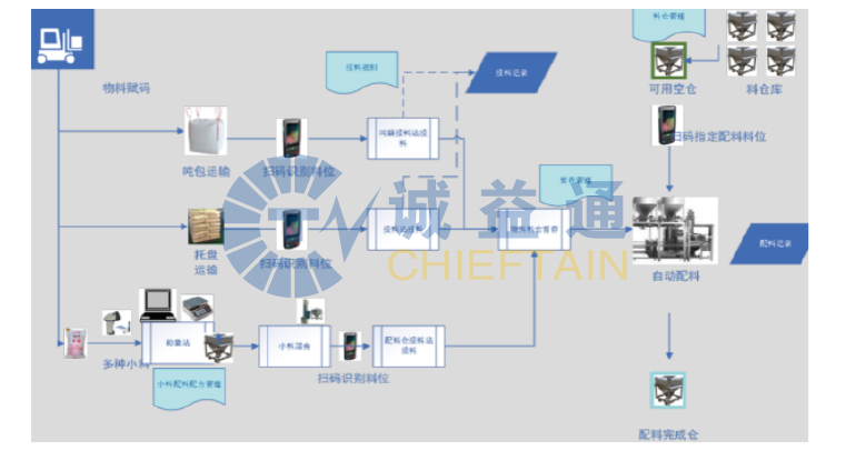 粉粒體系統工程整體解決方案廣泛應用于保健食品、獸藥、添加劑、日化、農藥、原料藥等行業生產過程中大產能原輔料的無塵化、自動化生產,智能物料轉運,有效地解決了粉粒體物料投料、粉碎、篩分、稱配、混合、包裝等工序的密閉處理,采用先進的控制技術并結合物料管理追溯系統,可以實現原輔料信息錄入、工單的創建和管理、精度控制、數據信息實時采集、顯示、存儲,具有很強的擴展功能。